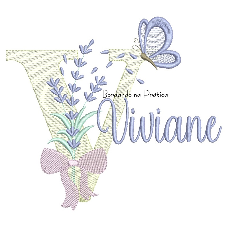 Matriz de Bordado Nome Viviane Lavanda com Laço