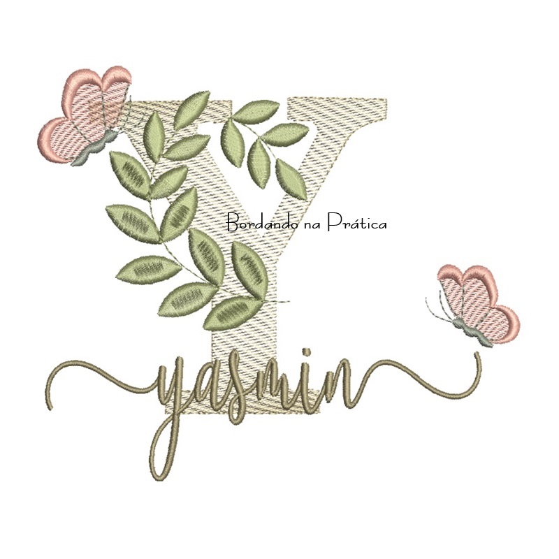 Matriz de Bordado – Nome Yasmin Folhas e Borboletas