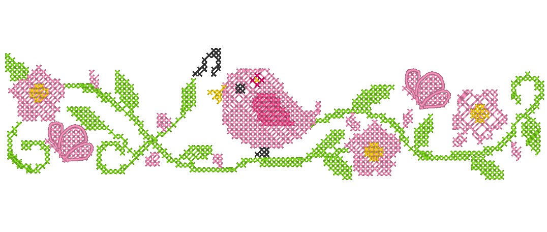Matriz De Bordado Passarinho No Ramo Ponto Cruz